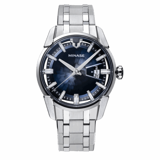 Minase watches' steel parts are hand-polished with the Sallaz polishing technique (also known as sarazu). A technique of polishing the steel by hand, piece after piece requiring an impressive level of skills and dexterity. Furthermore, steel bracelets are uniquely constructed; No exterior screws or pins are visible when the watch is worn thanks to the use of tiny screws on the underside of each bracelet link.