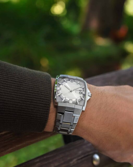 Minase watches' steel parts are hand-polished with the Sallaz polishing technique (also known as sarazu). A technique of polishing the steel by hand, piece after piece requiring an impressive level of skills and dexterity. Furthermore, steel bracelets are uniquely constructed; No exterior screws or pins are visible when the watch is worn thanks to the use of tiny screws on the underside of each bracelet link.