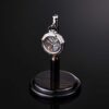 The pocket watch's stand is crafted from wood by a local artisan manufacturer situated near the Minase factory. Each piece is individually lacquered by Mr. Junichi Hakose. The metal ornament at the top is made of stainless steel. Its faceted form is inspired by the multi-sided geometry of the watch case, and every surface is finished with Sallaz polishing. In addition, a leather pouch and two braided cords traditionally crafted in Asakusa, Tokyo, are included. The watch and its accessories are presented in a luxury hand-made box from Akita cedar wood.