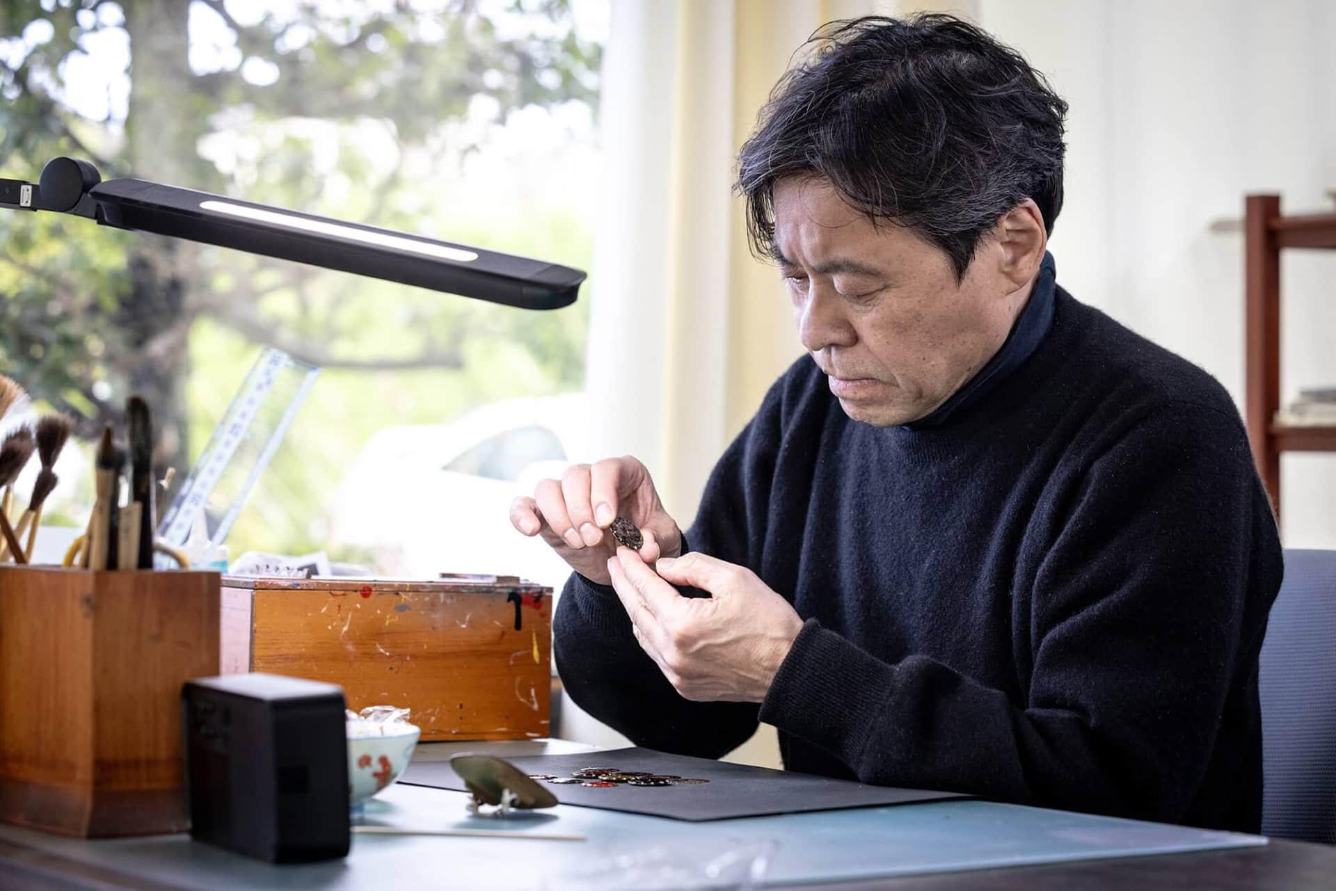 The base of Minase maki-e dials is brass, carefully heat-treated, polished and lacquered. Designs are then painted in lacquer, and before the surface dries, fine powders of gold and silver, along with colored pigments, are delicately sprinkled onto it. Each piece takes months to complete and embodies patience, precision, and a tradition of craftsmanship refined over centuries.